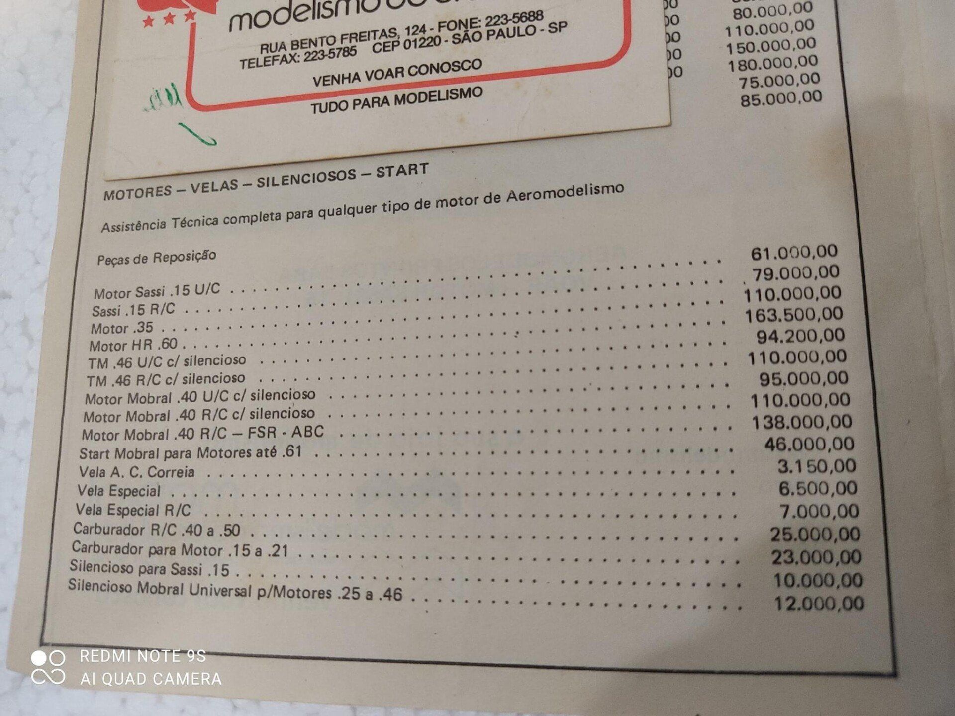 MOTORES MOBRAL .40 A versão “RING” vinha com silencioso; já a versão "FSR-ABC" (à direita) não tinha este acessório. Com base na Lista de Preços de MAIO/84,